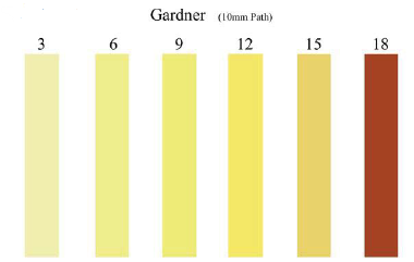 APHA의 경우 의약품이나 음용수등 물과 비슷한 시료에 주로 적용되며, Gardner의 경우 오일류와 같이 색이 좀더 진한 시료에 적용할 수 있다.