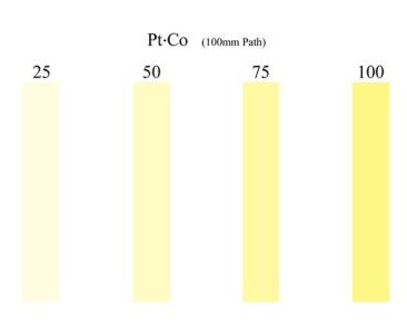 물(Water)과 Pt-CoPlatinum-cobalt (Pt-Co) 용액과의 색상비교에서 나온 값을 통해 컬러인덱스 기준을 나타낸다.