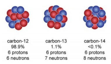 방사성동위원소 C-14는 반감기(half life)가 5,730년에 불과하므로 매장기간이 긴 석유에 존재하는 탄소는 C-14가 모두 붕괴되어 다른 핵종으로 변하였다. 그러므로 석유유래 제품의 탄소는 C-12가 99% 그리고 C-13이 1%로 되어 있으며, C-14는 존재하지 않는다.
