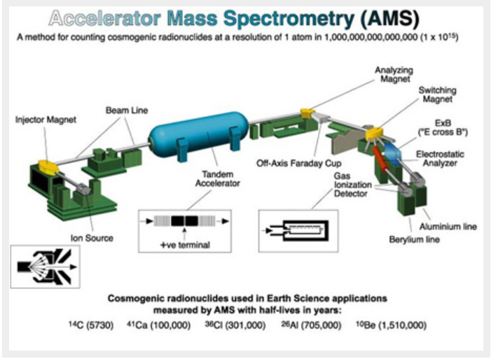방사성탄소동위원소는 가속질량분석기를 통해 분석이 가능하다.