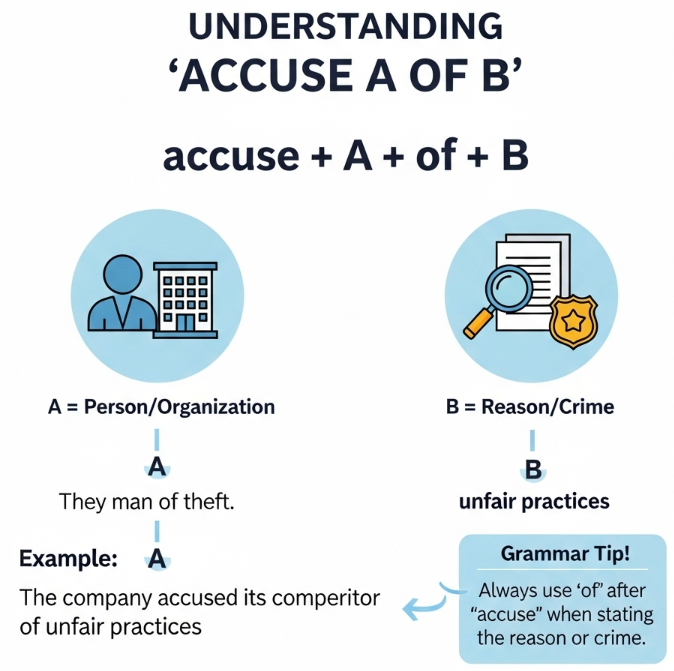 "핵심 구조: accuse + 사람/기관 (A) + of + 행위/죄목 (B)"
